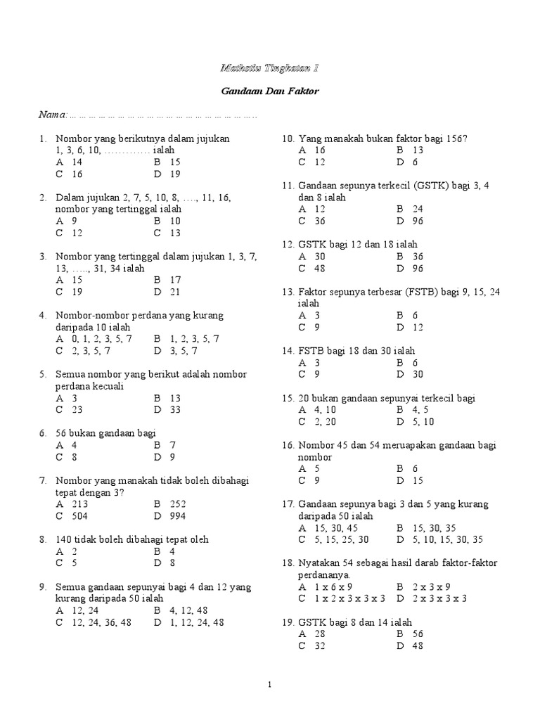 Add to my workbooks (0) download file pdf embed in my. 9 dan 12 jawapan: Finansialku akan berbagi cara bagi hasil keuntungan usaha fokus pada investor. Gandaan sepunya terkecil bagi 5, 4 dan 10 =. Gstk bagi 14, 28, 49 = 7 x 2 x 2 x 7 = 196.